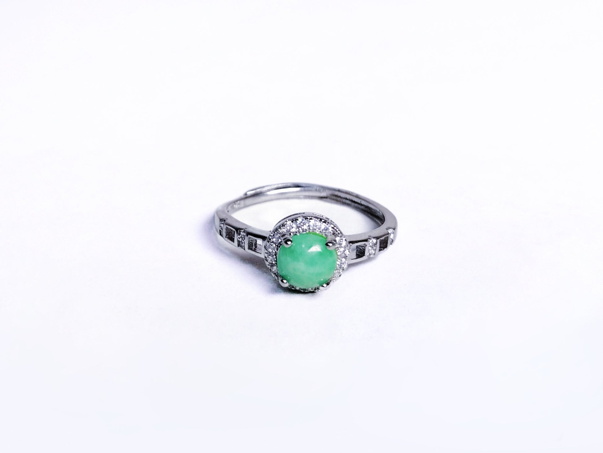 Design concept---Aurora: at the end of the world, deep in the darkness, searching for the grandest romance. The jade's color is as stunning as the aurora, and it looks even more exquisite against the backdrop of rhinestones. When you wear this ring, you will be the most dazzling presence in the crowd.